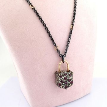 - An exquisite, convertible clasp necklace embellished with gold, colourful stones and diamonds on silver- Hand Made Necklace--------------------------------------------------