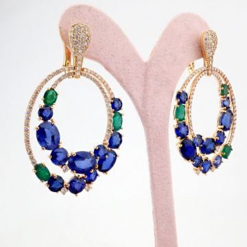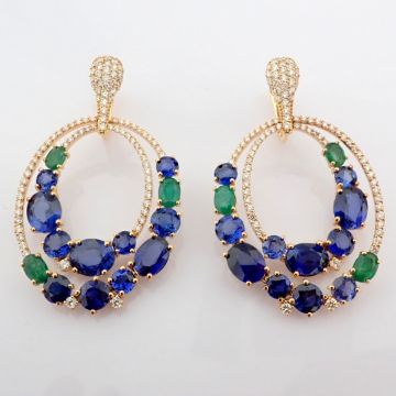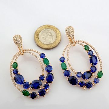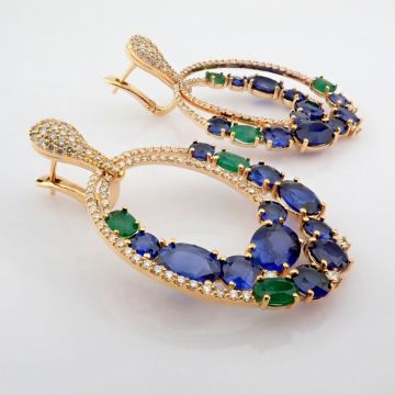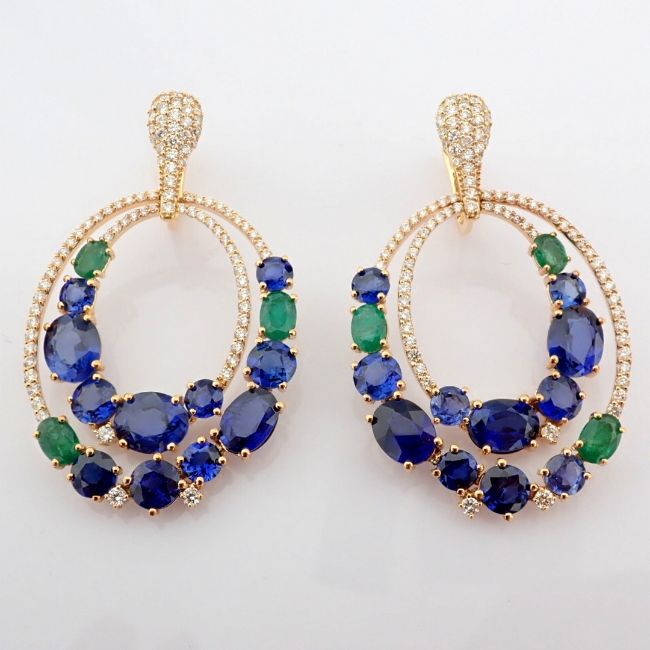 - 18K rose gold earrings detailed with vibrant emerald, sapphire and brilliant diamonds--------------------------------------------------