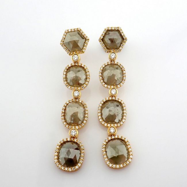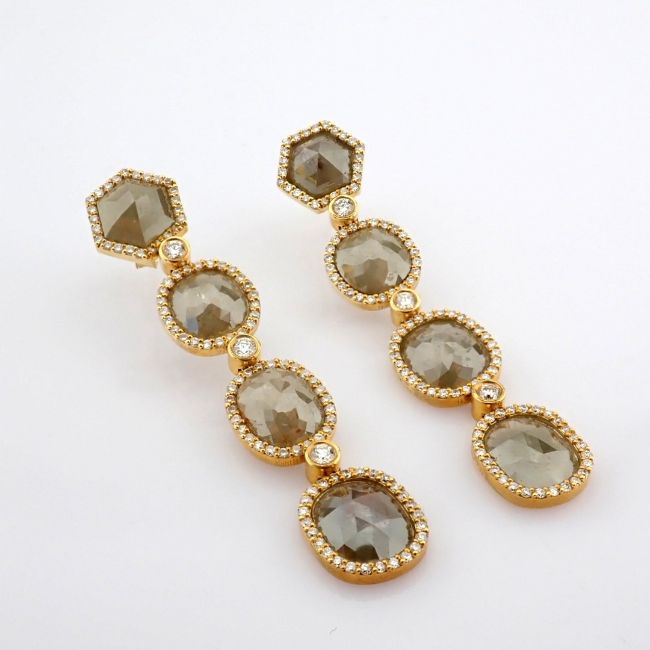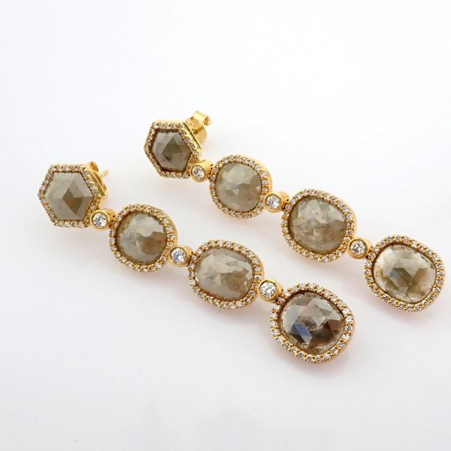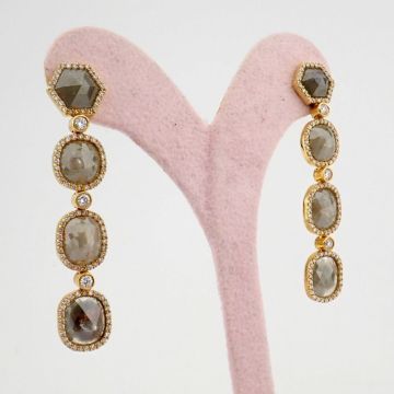 - An exquisite gold earrings detailed with slice cut rough diamonds in the centre and brilliant diamonds on frame--------------------------------------------------