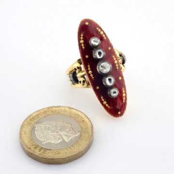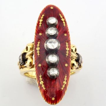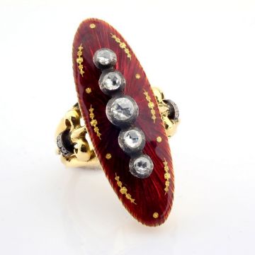 - An exquisite ring detailed with red enamel, brilliant diamonds and gold on silver- Hand Made Ring- One Of Kind--------------------------------------------------