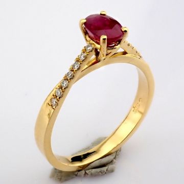- 18K yellow gold ring detailed with ruby and brilliant diamonds--------------------------------------------------
