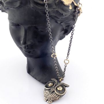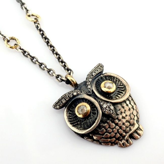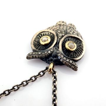 - Owl necklace detailed with brilliant diamonds and 14K gold on silver--------------------------------------------------