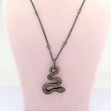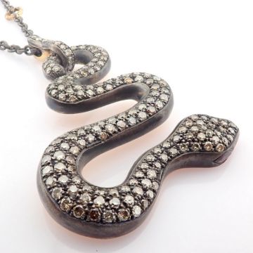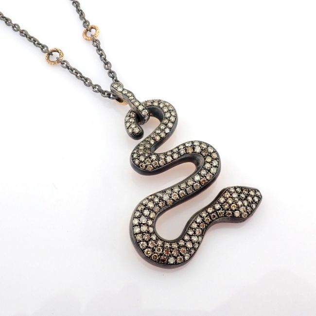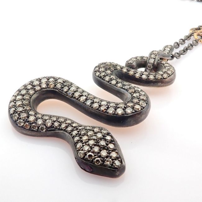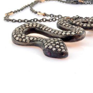 Title: Snake necklace detailed with brilliant diamonds and 14K gold on silver.