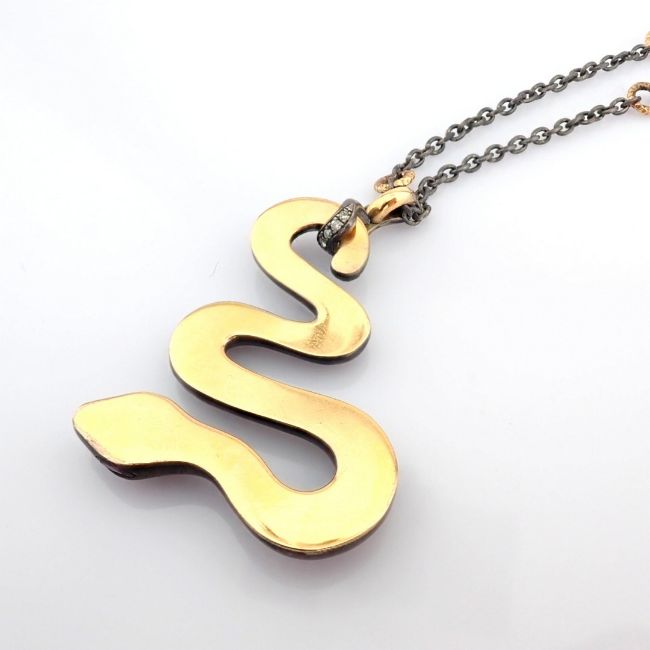 Snake necklace detailed with brilliant diamonds and 14K gold on silver.--------------------------------------------------