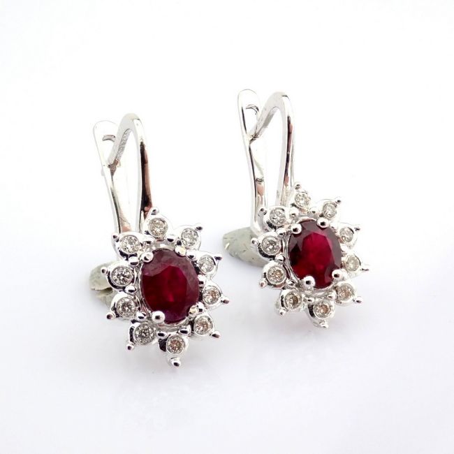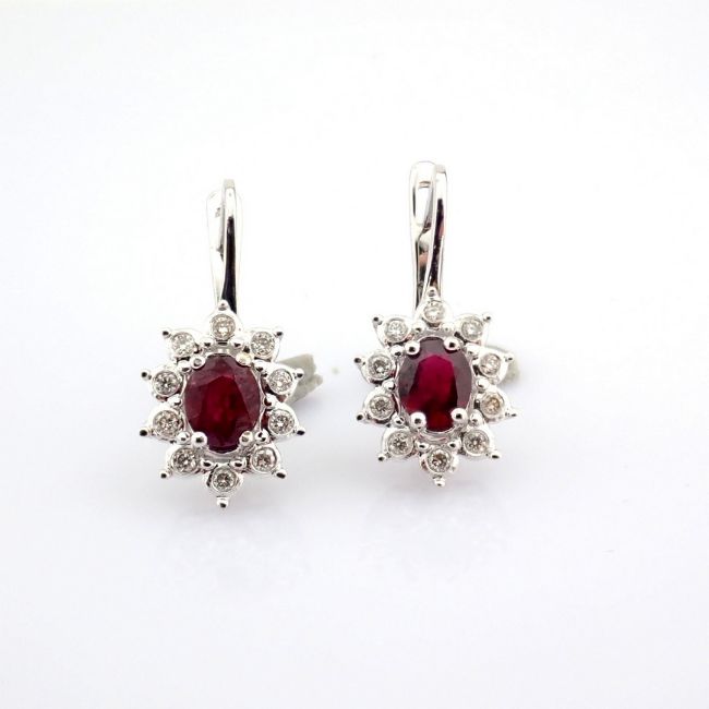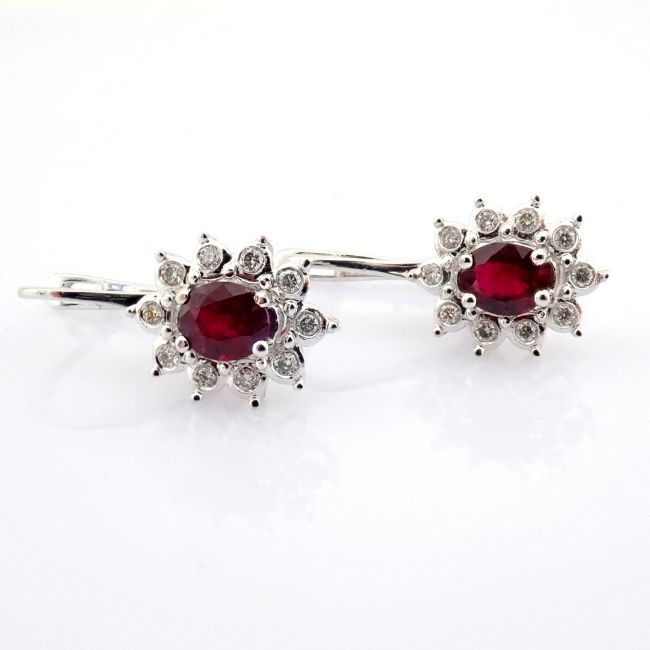 - An exquisite cluster earrings made of ruby, brilliant diamonds and gold --------------------------------------------------