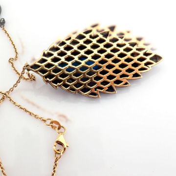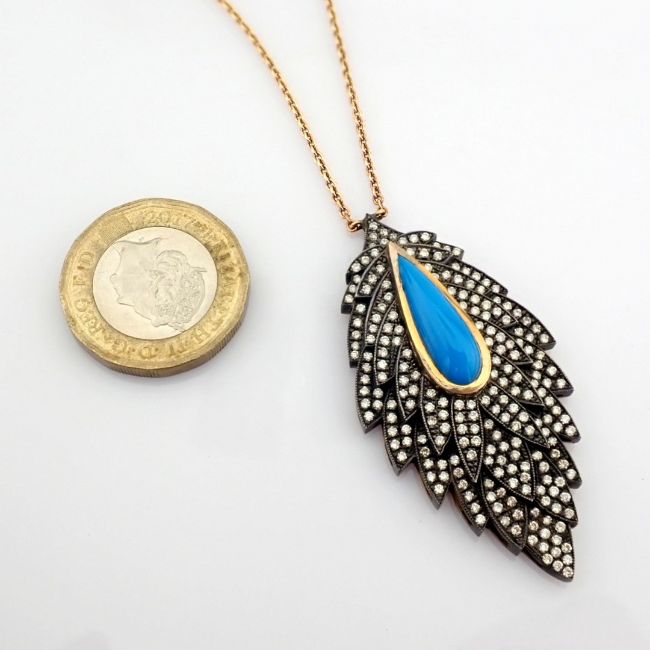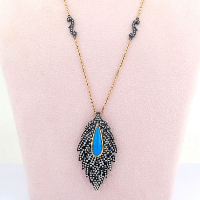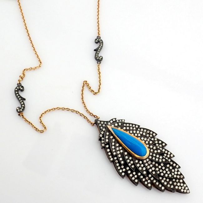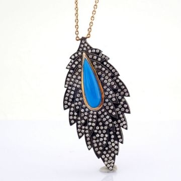 - Leaf necklace detailed with turquoise and 1.59 ct brilliant diamonds and 18K gold on silver--------------------------------------------------
