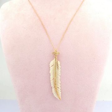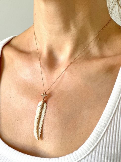 - An exquisite bone-carved feather necklace detailed with brilliant diamonds and gold - One Of Kind--------------------------------------------------