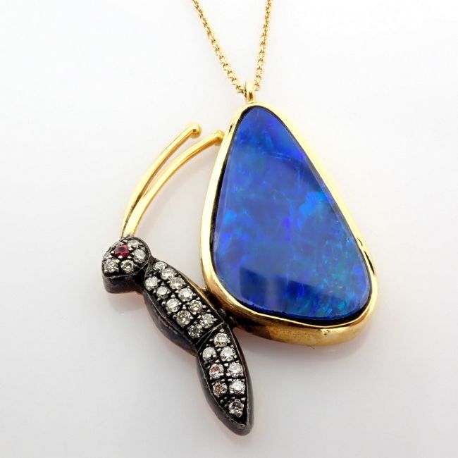 - An exquisite butterfly necklace detailed with doublet opal, brilliant diamonds and gold --------------------------------------------------