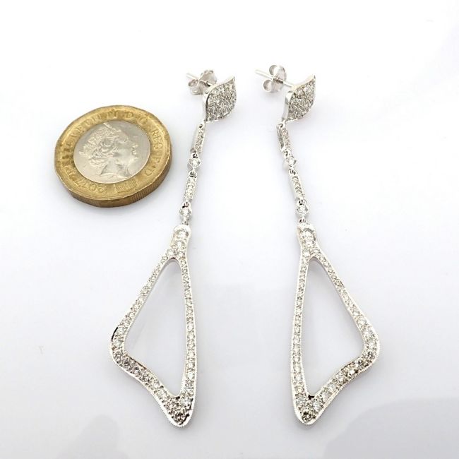 18K white gold earrings detailed with brilliant diamonds--------------------------------------------------