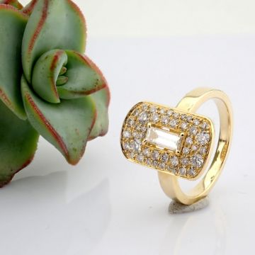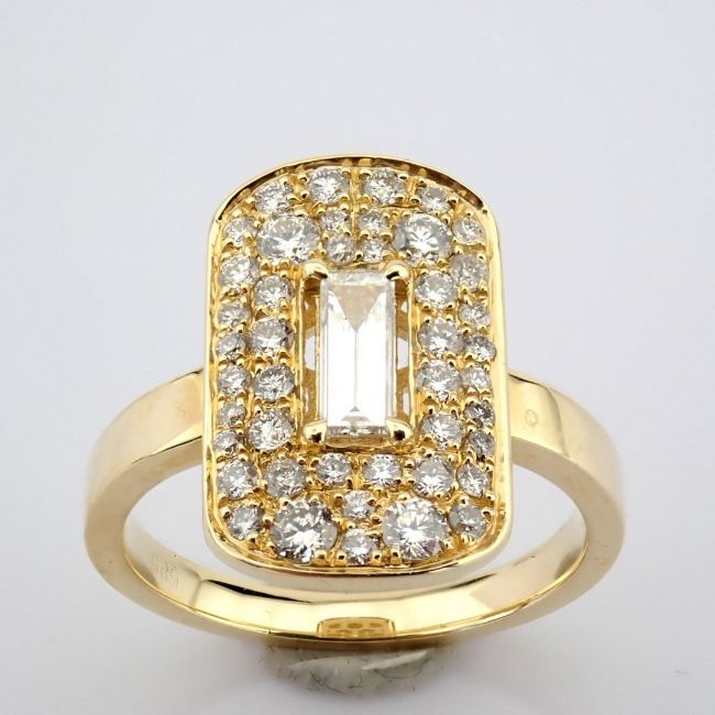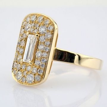 - 14K gold ring , with round and baguette cut diamonds--------------------------------------------------