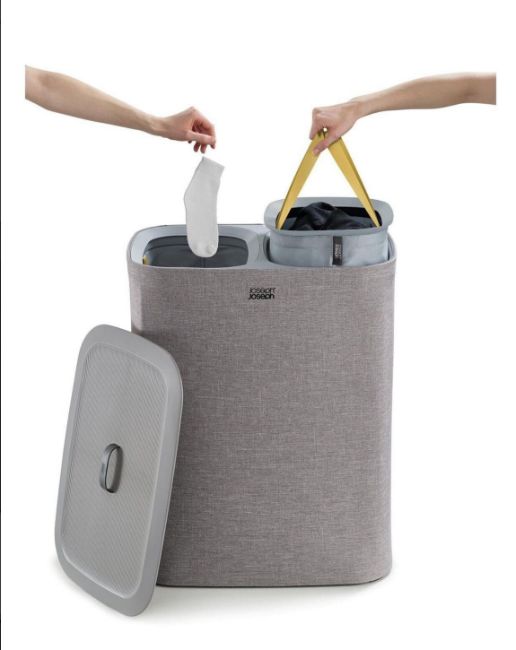 This smart Laundry Basket features a host of practical features that help make wash day less of a chore. Beneath the lid it has two 45-litre fabric tote bags allowing you to separate washing into light and dark/coloured fabrics. Each bag has handles at the top enabling you to conveniently lift and carry it straight to the machine and a helper handle on the base to make emptying easier.