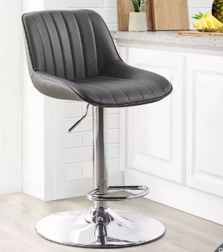 Whether you’re at a counter or bar, you’re sure to be at just the right height with the Bayside Furnishings Gas-Lift Barstool. You’ll also rest easy with the sturdy chrome footrest and base. The Gas-Lift Barstool lets you effortlessly turn 360 degrees. Best of all, it is adorned in rich, grey bonded leather upholstery for style and comfort.