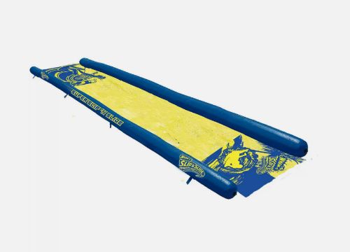 Designed with large inflatable bumpers to ensure a safe path as you race down the slide using the inflatable boogie boards.