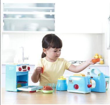 - Includes pretend foods- this fun set includes a mixer, blender, toaster, and oven along with fun and yummy food items such as roasted chicken, eggs and bacon, toast, apple, banana, as well as an accompanying frying pan, pot, and a mug