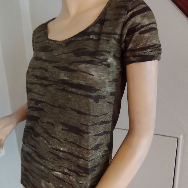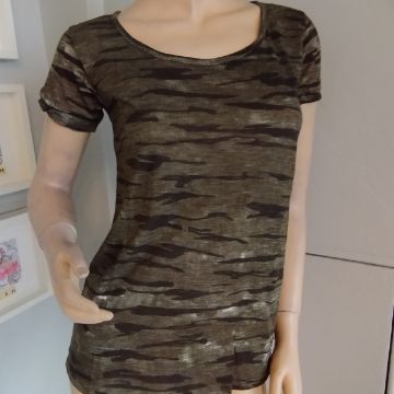 Ladies Camo Print Short Sleeve with Sheer Back Panel T-shirt