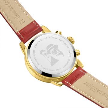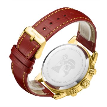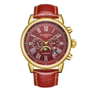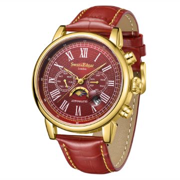 The centurion-red leather strap blends beautifully with the treasured gold IP case, detailed with the Swan & Edgar logo stainless steel caseback, which conjures intriguing questions about Britain’s heritage and how it will develop in the future.