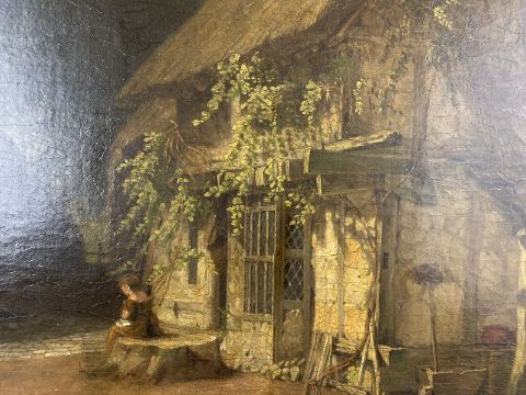 This painting is full of hidden romanticism details, from the foliage growing around the walls, the thatched roof, and the detailed woodland settings which combine to help paint a detailed picture of rural life in the 19th Century.