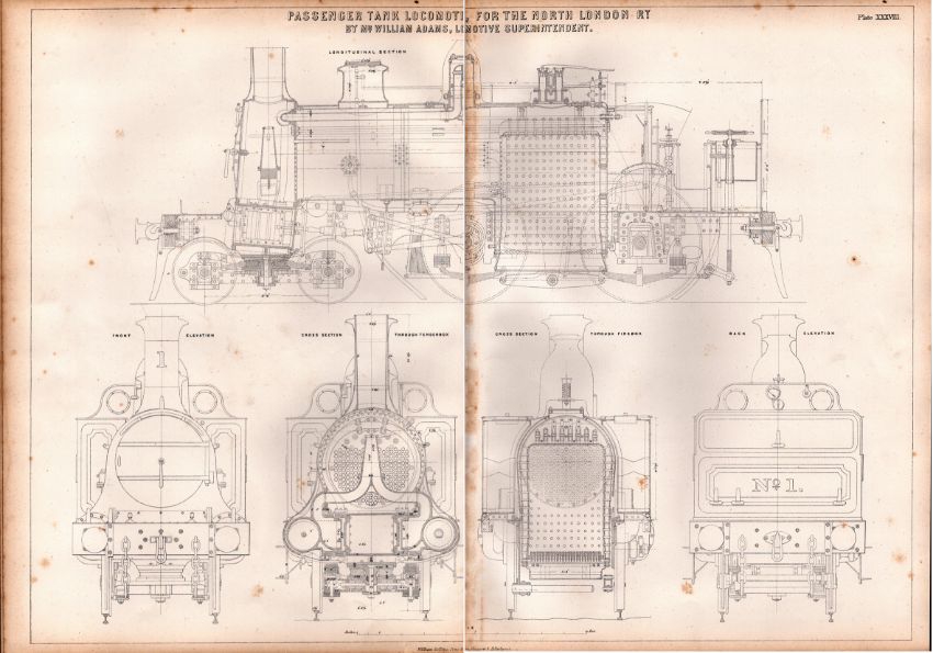 Passenger Tank locomotive  North London Railway Antique Diagram-28.