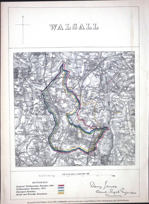 Walsall Midlands Boundary Commission 157-Year-Old Coloured Antique Map.