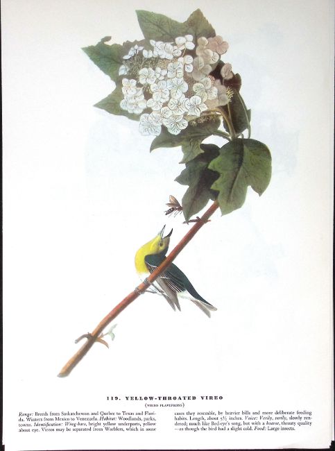Yellow-Throated Vireo Audubon Birds of America 72-Year-Old Book Plate-132.