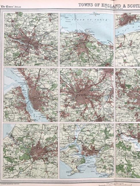 Antique Bartholomew  Large Coloured Map 12 Cities of England and Scotland.