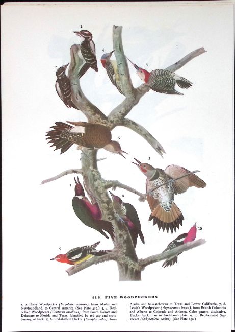 Five Woodpeckers Audubon Birds of America Coloured 72-Year-Old Book Plate-140.