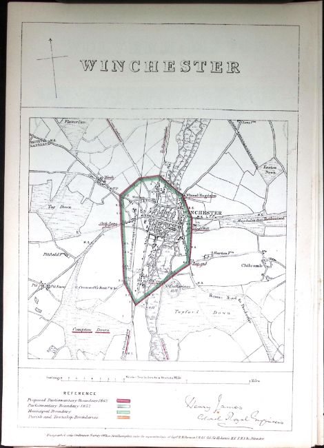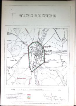Title: Winchester Hampshire Boundary Commission 157-Year-Old Coloured Antique Map.