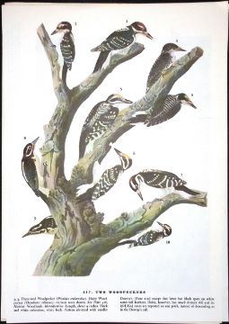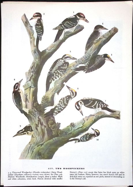Two Woodpeckers Audubon Birds of America 72-Year-Old Coloured Book Plate-181.