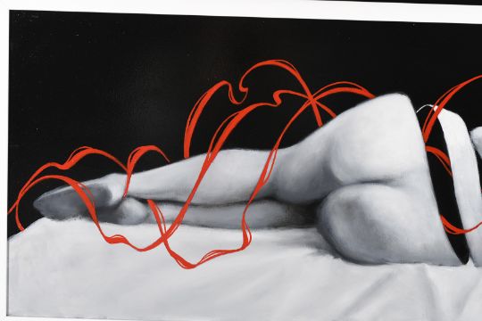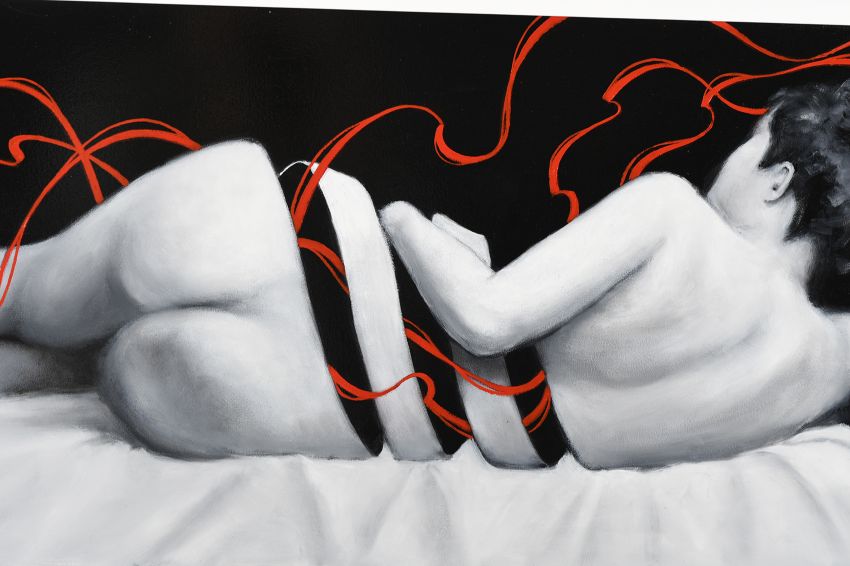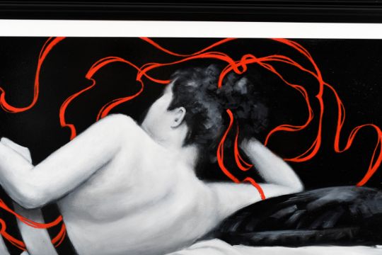 This is a fabulous modern work of art painted in a style that the artist is well known for.