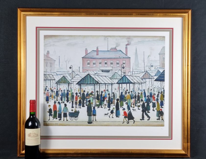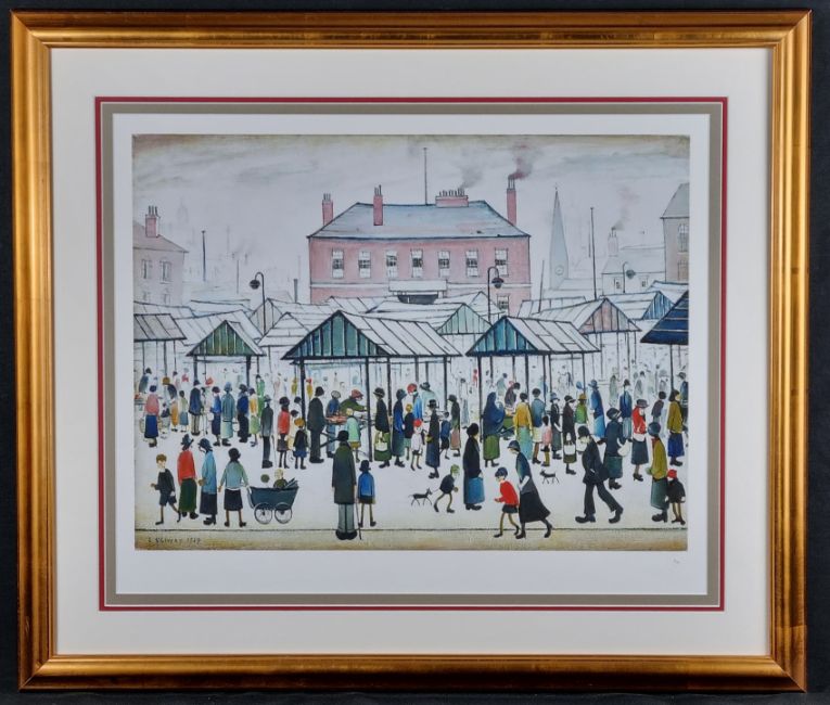 Titled "Market Scene, Northern Town, 1939" with signed certificate of authenticity (signed by the Master Printer).