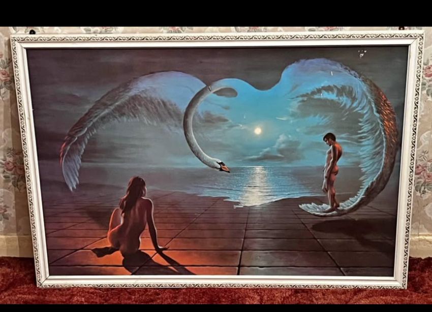 The swan’s wings form a heart shape, symbolising a mystical connotation between the characters