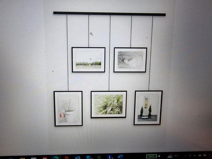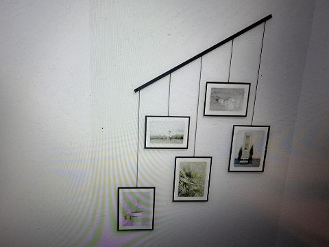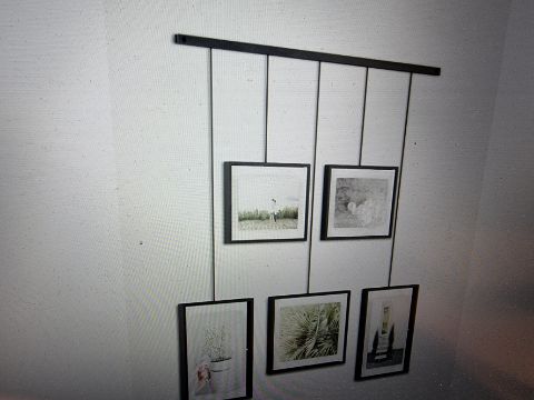 This versatile picture hanging frame can even be positioned to suit a slanting wall under hallway stairs.