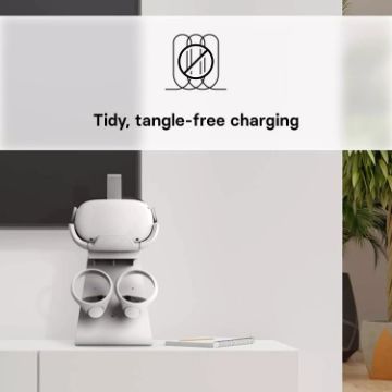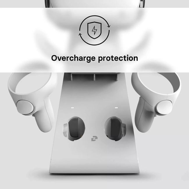Featuring overcharge protection for your Quest 2 headset, the cradle will automatically stop charging your headset and controllers when fully charged.
