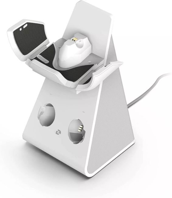 For ease of use, the Charge Dock uses a simple, touch-powered design. When placing your Quest 2 headset into the cradle, it automatically closes and begins charging the device. Just tap the touch sensor on the underside of the cradle to release, ready to play.