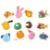 Monkey, tiger, pig, elephant, rabbit, frog, dog, lion, angel fish, puffer fish, clown fish and multicoloured goldfish shape.