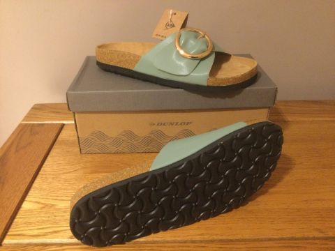 Not only is this Dunlop mule eye-catching due to the incorporation of a faux leather upper that interlinks with buckle detailing, but it is also exceptionally comfortable.