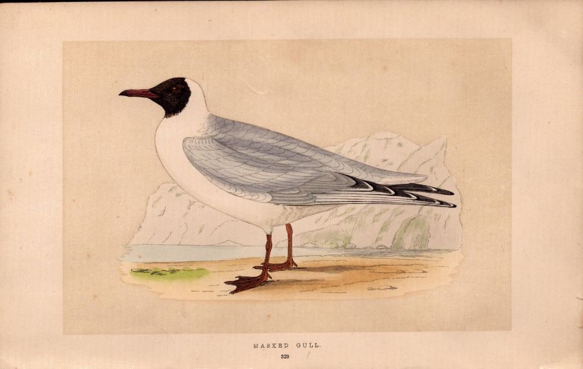 Masked Gull Rev Morris Antique History of British Birds Engraving.