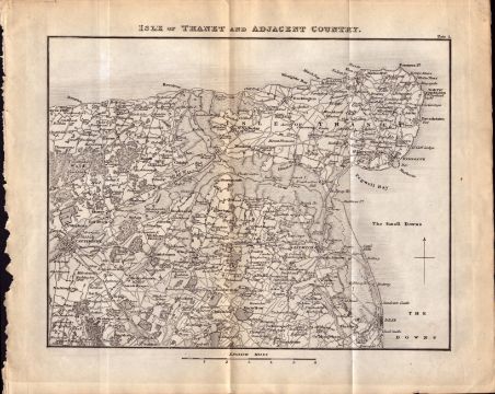 Isle Of Thanet & Adjacent County Kent King George IV 197 Years-Old  Antique Map.