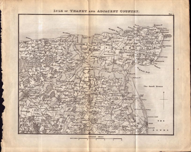 Title: Isle Of Thanet & Adjacent County Kent King George IV 197 Years-Old Antique Map.