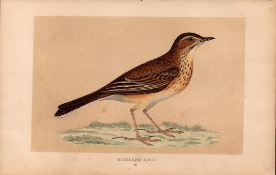 Title: Richards Pipit Rev Morris Antique History of British Birds 170 Years-Old Engraving.