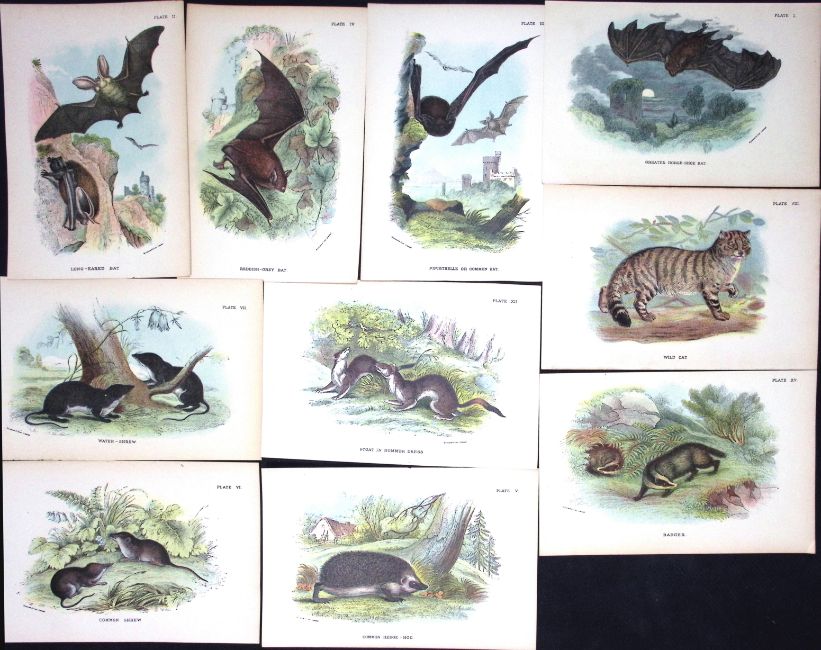 Job-Lot 10 Lloyd's Natural History, British Mammals Antique 1896 Prints-1.