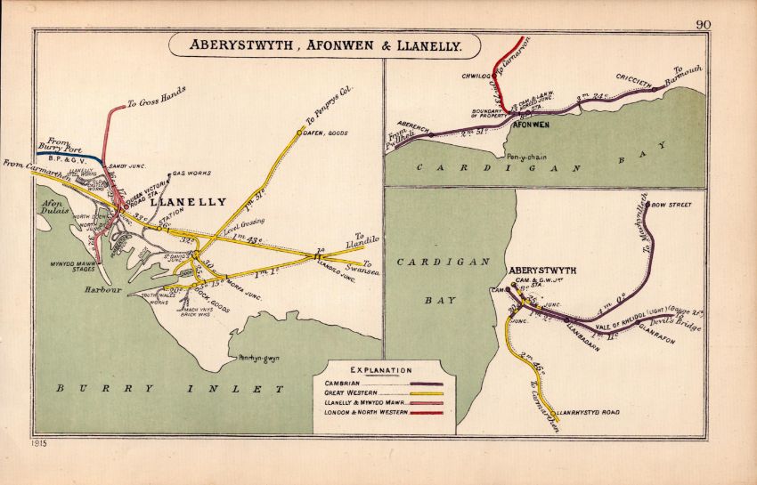 Title: Aberystwyth Afonwell & Llanelly Wales Antique Railway Diagram-90.