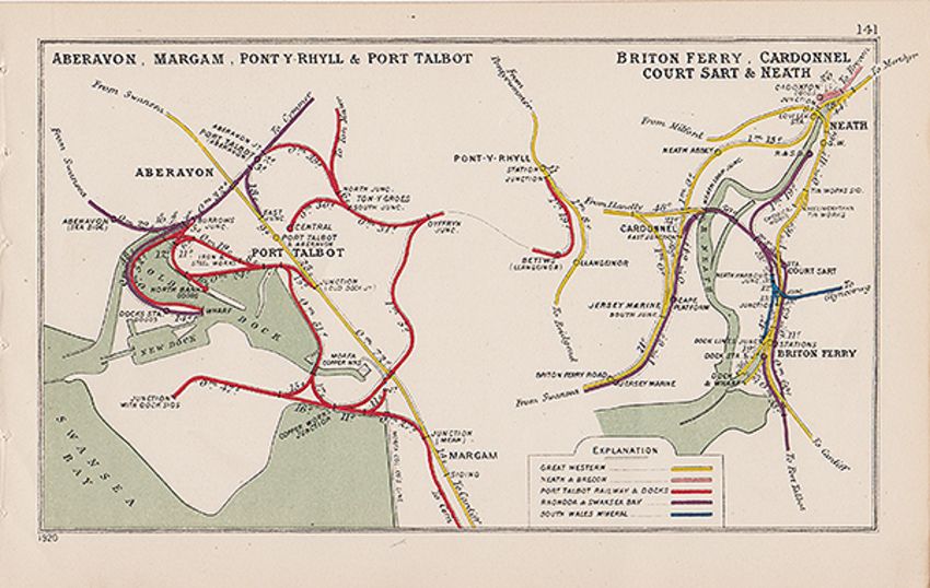 Title: Aberavon Margam Pont y Rhyll & Port Talbot Wales Antique Railway Junction Map-141.
