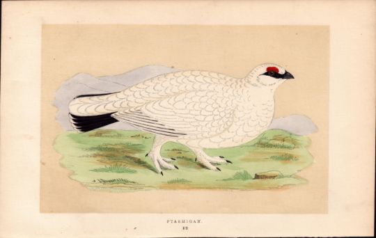 Title: Ptarmigan Rev Morris Antique History of British Birds 170 Years-Old Engraving.