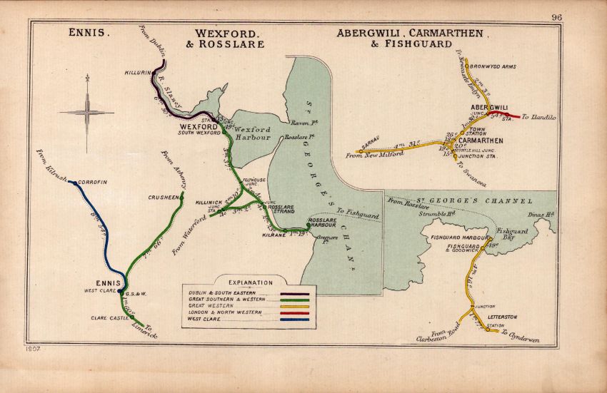 Ennis Wexford & Rosslare Ireland Antique Railway Diagram-96.