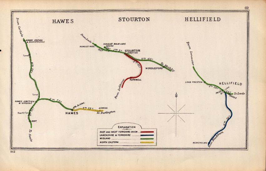 Hawes, Stourton & Hellifield Yorkshire Antique Railway Junction Map-69.