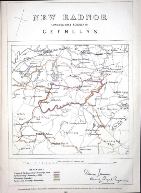 Title: New Radnor Cefnllys Area Powys Wales Boundary Commission 157-Year-Old Antique Map.