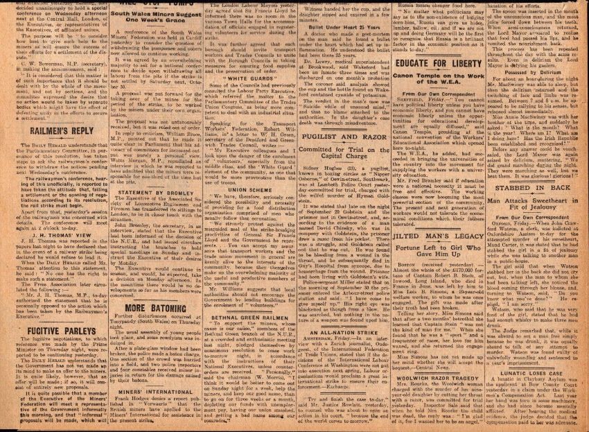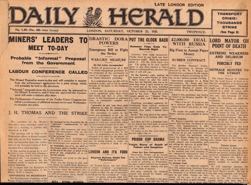 An Original Antique  Broadsheet Newspaper Page from The London Daily Herald 1920.