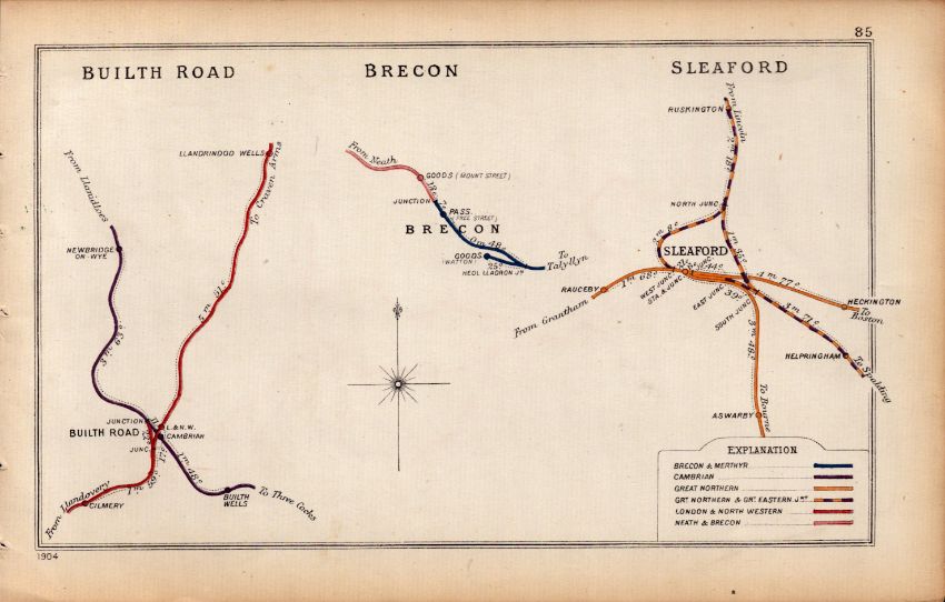Builth Road, Brecon, Sleaford Antique Railway Junction Diagram-85.
