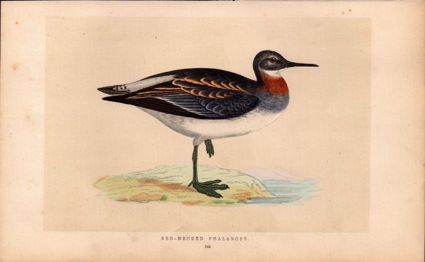 Red Necked Phalarope Rev Morris Antique History of British Birds Engraving.